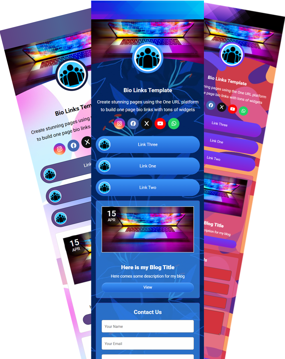 Create a stunning mobile-friendly bio with One URL, we help content creators effortlessly compile a one-page bio that includes galleries, videos, Spotify links, products, articles, and contact forms